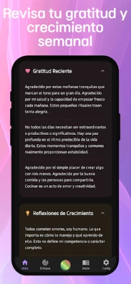 Reflecta se convierte en tu compañero de diálogo más atento, guiando tu auto-reflexión con preguntas perspicaces que te ayudan a desentrañar emociones, definir aspiraciones y delinear los pasos a seguir. Pero va más allá de la mera escucha: a medida que compartes, la aplicación identifica de forma inteligente las intenciones y tareas ocultas en tus palabras, generando una lista de acciones personalizada. Así, mantienes el foco y la productividad, transitando sin esfuerzo del pensamiento a la ejecución, todo dentro de una misma experiencia fluida.