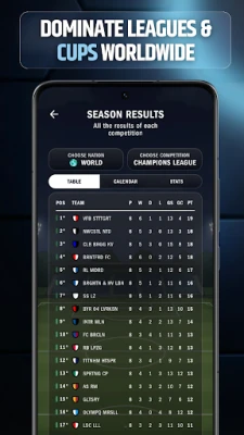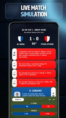 La emoción del día de partido cobra vida con FootLord, ofreciéndote un control sin precedentes. Interviene en tiempo real con decisiones tácticas cruciales que pueden revertir el marcador, y siente la euforia de los aficionados con cada gol y cada victoria. Si buscas una experiencia más inmersiva o, por el contrario, prefieres un rol de observador, el juego se adapta a ti: gestiona cada detalle en el campo o deja que la IA se encargue y disfruta del espectáculo. Para los impacientes, la simulación rápida te permite vivir la evolución de temporadas completas en cuestión de minutos, presenciando cómo tu equipo se forja y se adapta a la competición.