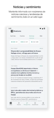 KasLens – KAS Perspectivas es tu fuente esencial para el ecosistema Kaspa. Ofrece información en tiempo real, análisis de sentimiento y noticias resumidas para traders, inversores y entusiastas. Mantente siempre al día con claridad e inteligencia sobre el mundo cripto.