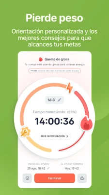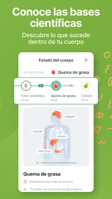 Dentro de Kompanion, encontrarás un ecosistema de funcionalidades pensadas para simplificar y enriquecer tu ayuno. Desde un intuitivo temporizador que registra meticulosamente cada ciclo y tu historial, hasta planes de ayuno intermitente que se ajustan a tu fisiología o se pueden diseñar a medida según tus preferencias. Sumérgete en las "Fases del Cuerpo" para comprender los procesos internos que ocurren mientras ayunas y registra tus sensaciones en el "Diario", el cual visualizará tus patrones de ánimo a lo largo del tiempo. Además, nuestro "Centro de Aprendizaje" desvela la ciencia detrás del ayuno y sus beneficios, complementado con el contenido prémium de artículos y Preguntas frecuentes elaborados por nuestros nutricionistas, manteniéndote siempre motivado con el seguimiento hora a hora de los cambios en tu organismo.