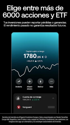 Más allá del día a día, Revolut te invita a construir patrimonio. Accede a un vasto universo de inversiones con miles de acciones, ETF y bonos, recargando tu cuenta de inversión directamente desde tu cuenta personal en cuestión de segundos. Además, automatiza tu estrategia con Robo advisor y conviértete en un inversor proactivo. Y cada vez que usas tu tarjeta Revolut, acumulas RevPoints, canjeables por millas aéreas, descuentos en alojamientos y mucho más. Para una experiencia superior, explora los planes premium Plus, Premium, Metal o Ultra, que ofrecen beneficios exclusivos y seguros especializados. Tu tranquilidad es nuestra prioridad: como banco regulado, tus depósitos están protegidos, y nuestro sistema antifraude, junto con un soporte 24/7 en la app, garantizan la seguridad de tu dinero en todo momento. *El capital está sujeto a riesgo. Tus inversiones pueden generar ganancias o pérdidas.*