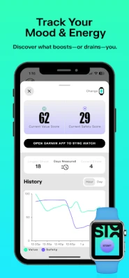 Con un fundamento de más de 20 años de investigación, SIX va más allá del monitoreo tradicional. Analiza tus respuestas cerebrales vinculadas a neuroquímicos cruciales como la oxitocina y la dopamina, otorgándote puntuaciones en tiempo real de Valor (tu conexión emocional) y Seguridad (tu estado de comodidad frente a la ansiedad). SIX te revelará tus "Momentos Clave" diarios, esos seis instantes que tu cerebro identifica como profundamente significativos, permitiéndote comprender qué eleva tu ánimo, energía y claridad mental. Además, sus pronósticos anticipan tus estados de ánimo y niveles de energía futuros, dándote el poder de planificar días más restauradores y productivos.
